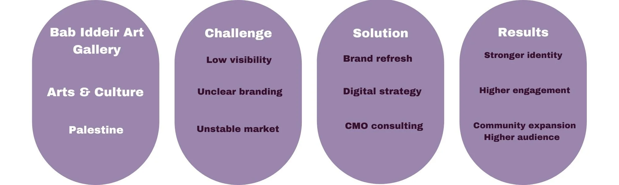 To sustain its mission and reach wider audiences, Bab Iddeir turned to Olives & Heather for strategic marketing and CMO consulting. Together, we reexamined the gallery’s vision, refined its identity, and rebuilt its digital presence from the ground up.
